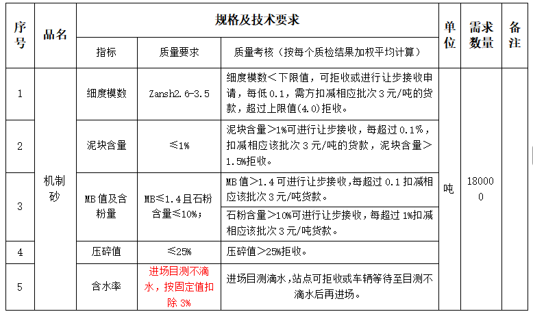 交貨期:要求所有水洗機制砂供應滿足生產需求。